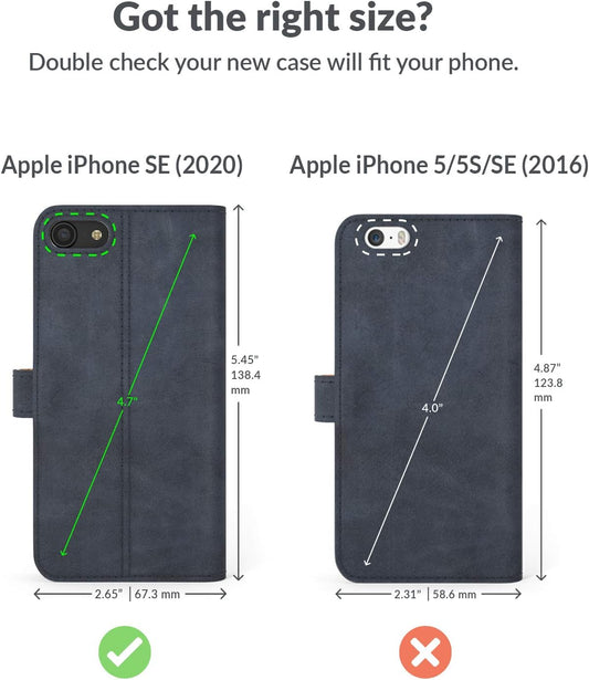 Vintage Wallet for Apple Iphone SE 2022/ Iphone SE 2020 || Real Leather Wallet Phone Case || Genuine Leather with Viewing Stand & 3 Card Holder || Flip Folio Cover with Card Slot (Navy)